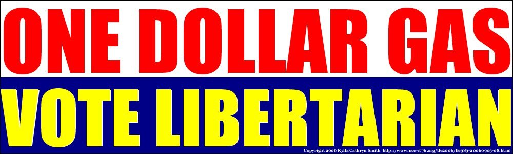 Ladies and gentlemen, honesty compels me to admit, right at the beginning of this presentation, that the title "One Dollar Gas" is misleading. The fact is, under the "system" of unfettered individual liberty that we all advocate, and to which many of us have dedicated their lives, the price of gasoline should be considerably lower than a dollar a gallon. The exciting news is that, if libertarians make this clear to voters who are increasingly outraged at the current price of gasoline, it could represent a new beginning for the Libertarian Party. When people ask you how one dollar gas is possible, begin with the easy and familiar. There are special excise taxes on fuel that do not apply to other commodities: 18.4 cents per gallon federal, 40.4 cents per gallon here in the state of Colorado, an average of 2 cents per gallon at the local level, for an approximate total of 61 cents per gallon. The first, most obvious thing to be done about this mess is to remove these taxes from the price of gas. There should have been some sort of emergency trigger to accomplish this automatically a long time ago. However to work properly, to get the price of gas down to a dollar a gallonor lessyou have to go further than the price at the pump. At the beginning of the Ed Clark campaign in 1979, his handlers floated a trial balloon involving the removal of all taxes from every stage of the production, processing, transportation, distribution, and sale of food, figuring that no one who claimed to be humanitarianliberal or conservativecould say a word against it. Someone must have said something, because the finger-in-the-wind boys soon dropped the idea like a hot potato and that was the last that anyone heard of it. Too bad, because it was a great idea. A libertarian gas program must encompass the entire chain of fuel production, from the bottom of the well to the tip of the nozzle. A libertarian president could declare a state of emergency to accomplish that, and then "jawbone" other jurisdictions into following suit. If our enemies didn't care for that use of presidential emergency powers, they could pass legislation to revoke them and libertarians would win, anyway. There are those who may accuse us of favoring the special interest of the gas companies. So I would go even further, removing all taxes from all the necessities of life, including food, clothing, shelter, transportation, and self-defense. Add de-taxing anything protected by the Bill of Rights, you have a splendid program for the LP or anybody else. One of my earliest speeches to libertarian groups described an eight-fold multiplier that will manifest itself in the absence of government interference with the lives of individuals. On average, each of us pays out half of his or her income to one government or another. Remove those taxes, and it will immediately double your real wealth. You'll have twice as much money to spend, on anything you like. And in terms of purchasing power, the relative price (not the absolute pricewe'll get to that) of gasoline drops from $3.00 to $1.50. Before we even get to special excise taxes, the people who provide the goods and services we rely on pay out half their income to the government, as wellonly they don't pay it, of course, we do. Get rid of their taxes, and the price of goods and servicesincluding gasolinegets halved again, and, in terms of purchasing power, in terms of real wealth, we're now effectively paying a mere 75 cents a gallon. But, as Ron Popeil always tells us, there's more! I had long estimatedand writers like Dixy Lee Ray later confirmedthat the cost of complying with government regulations doubles the price of goods and services. Without those regulations and those who force compliance with them, the price of everything we buy would get halved again. And now gas is costing us 37 1/2 cents per gallon. "Q" as the saying goes, "ED". For those who won't listen to that argument, I have another. Thermal depolymerization. Thermal depolymerization is a relatively new method by which every possible kind of garbage, from the results of turkey processing, to mountains of cast-off tires, to old computer cabinets, can be turned into "artificial" gasoline at an ultimate cost of just eight dollars a barrel. The only trouble with this technology is that it gores just about every ox presently blundering around our sorry political and economic landscape. The current fuel crisis isn't really so much about oilthere's plenty of that, and it will never run out, as you'll see in a momentit's about what sources of oil we'll be allowed to use by our political and corporate masters, as opposed to new sources they desperately want to shut down as soon and as completely as possible. There's no profit for George Bush and his petropals in recycling old tires. That's almost certainly why the first thermal depolymerization plant built to full-scale and located in Carthage, Missouri, right next to the Butterball Turkey plant was found to have 5000 defective welds in its maze of piping before it could begin operation. It's almost certainly why the Butterball plant suddenly raised the price of its garbage so that the cost of converting it would be prohibitive. And it's almost certainly why the governor of Missouri ordered the thermal depolymerization plant shut down, claiming it was "too smelly". Ever smell a turkey processing plant? Some friends of mine, online, attempting to estimate a per-gallon cost of gas from this source discovered that the per-barrel price of oil has never been as low as eight dollarsthe estimated cost of oil made by the company performing the thermal depolymerization. It was at least double that amount when I started college, cigarettes cost 35 cents, and gas was 23 cents a gallon. Thermal depolymerization means that Americans can have all the fuel they want, and watch the landfills gradually disappear. And in an age where automotive exhaust consists of very little besides carbon dioxide (very good for