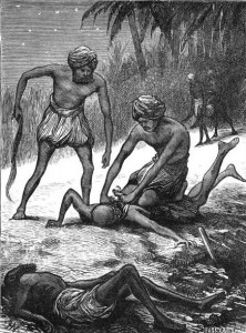 Our immigration fellow wrinkles his brow: “Correct me if I’m wrong, now, but isn’t that the religious cult whose members traveled in gangs, who would fall in with wealthy travelers, win their confidence, and then smother or strangle them to death in their sleep in order to steal whatever they carried?”