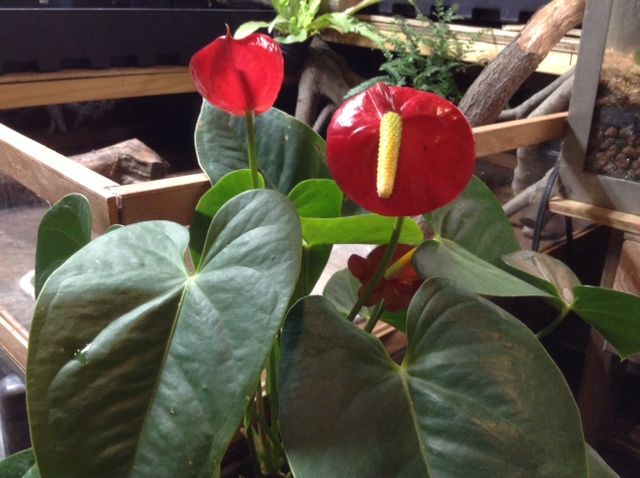This is the one that started out in the old Frog Tank and moved from there to the greenhouse in summer and spent winter as a house plant. What I really want is A. sherzerianum for that spot but that may never happen and for the time being this one which appears to be some kind of andreanum hybrid—possibly with some of the one I want in the mix and it is starting to win my heart as a good Florida Room / Greenhouse plant. It got some clay pebbles topped with a layer of sphagnum and then an enhanced ABG mix with extra tree fern and sphagnum added. Most horticulturalists recommend using those two in combination with each other and sometimes orchid bark and others recommended a tropical plant mix that was very similar to ABG for Anthuriums and other jungle plants.