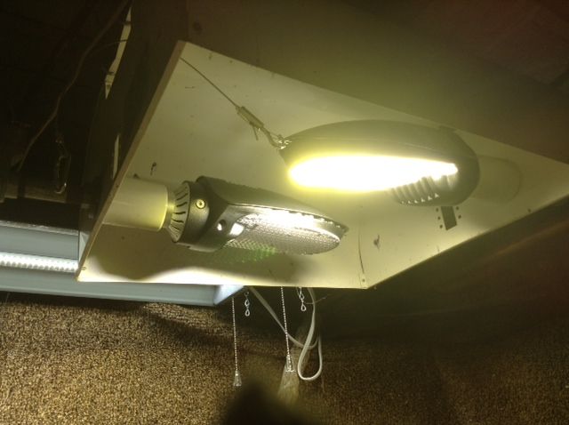 Have a problem with one fixture that needs repaired or replaced but it looked as if just one of the 400 Watt equivalent replacement bulbs was sufficient to give the plants what they needed for now—in addition to the two Walmart LED shop lights that come on mid day and continue on after the the 6 hour cycle of the Superbright ends at 3 PM. This simulates bright morning sun of an eastern exposure with late afternoon and evening indirect light which is considered ideal for plants and critters. Will eventually get the broken fixture repaired or better yet get a second one to hang a few feet away to spread out the illumination footprint better. And add some more shop lights.