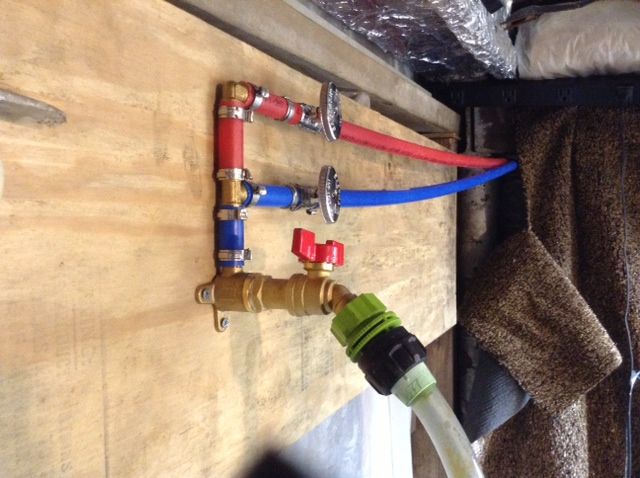 The hookup went ok for the line to the house. The one to the greenhouse is going to need a 6 inch nipple fitting to extend it a little to make up for what appears to be displacement of the Pex line by frost heaving that pulled it downward. Always something.