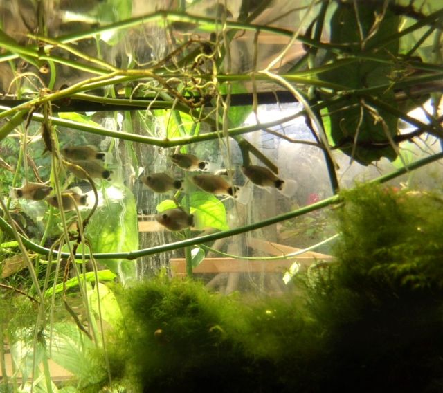 The Ammano Shrimp are good cleaners but need brackish water to breed and I think the babies might go out to sea to live as zooplankton for a while like the familiar shrimp and crabs we eat! A bit too complicated for me and apparently not practical for aquaculture so these must be sourced from the wild like most marine fish and other sea creatures that are kept by hobbyists. It's a temporary fix until I can get the Cherry Shrimp which are a bit hard to come by right now.