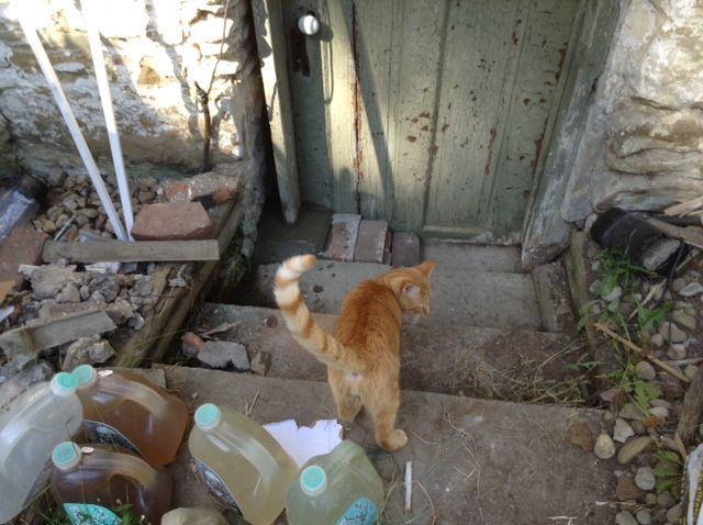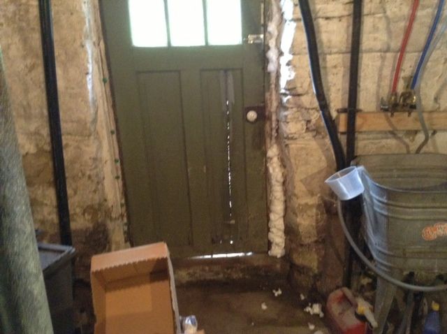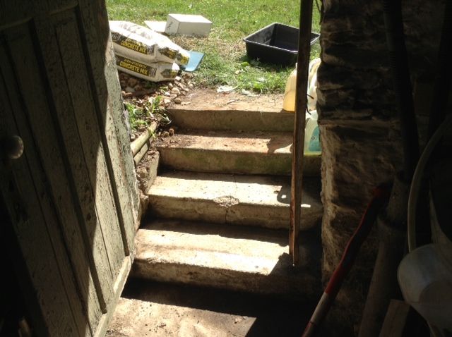 I started on my next project that day; aimed at economizing energy—the cellar door that has been a-jar because the frame on one side has warped out from the wall and I’ve been propping it shut with a metal pole for years which has obviously been a major drain on efficiency in the way of cold air infiltration into the basement ! After getting the door and frame back in place I was going to pour concrete in the space between the middle step and the door to fill that up and keep the frame from moving anymore. It’s an easy and inexpensive fix so I can get that issue off the table and move on to dealing with other things.