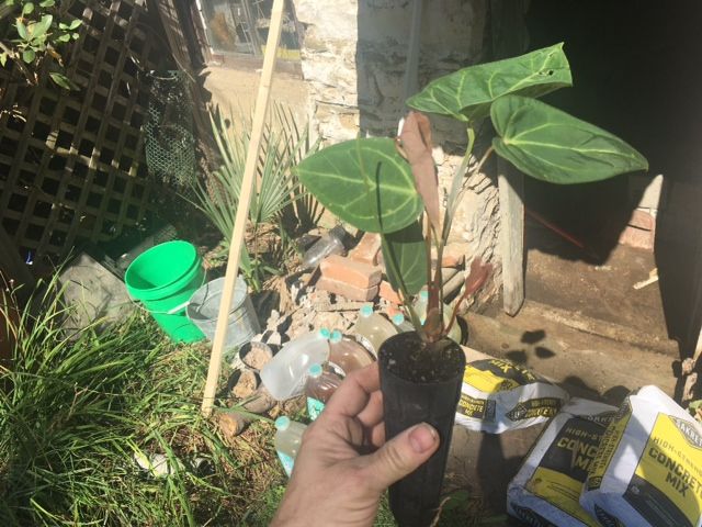 While cleaning up and getting ready for the pour ; UPS arrived to deliver the Crystal Anthurium—another old mainstay of the Florida Room back in the day and very difficult to get like many old heirloom plants these days. This is my second attempt this year. The one I got back in early spring died and for a while it was looking like it would not be available again anytime soon—at least not for a reasonable price. But I got lucky last week and was able to order from a grower who finally had gotten a new batch ready for sale.