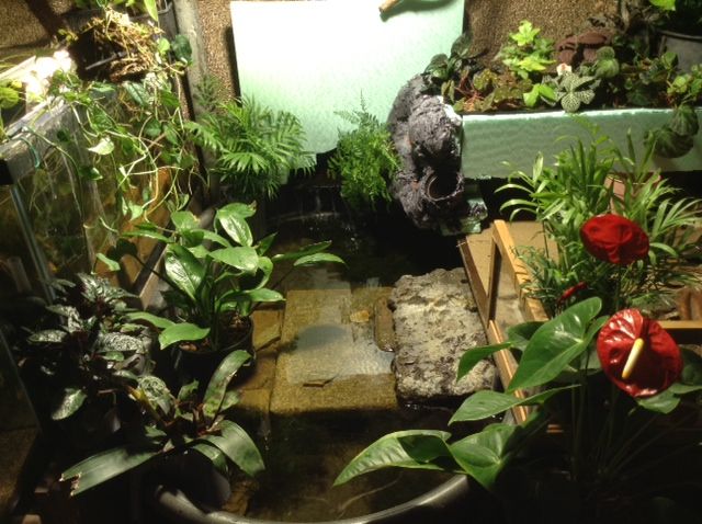 If only I still had my two nice female breeders. The current female has eggs in her brood pouch but it does not look to be going so well. I’m thinking I might be able improve the chance for future success with this new setup—especially if I add a misting system like some of the people have for their dart frogs in the videos I’ve been watching.