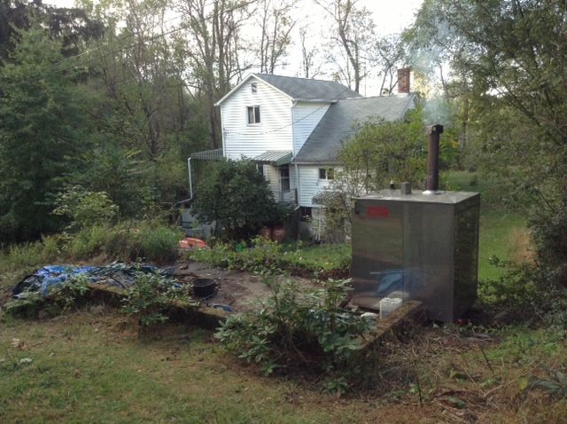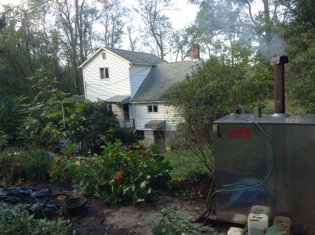 Not long after that I was rushed to be ready for Bruce “The Historian” who was coming to help me hook up the lines to the outside furnace. Even had to put my bacon and eggs aside and cover them with an inverted dinner plate and eat them warmed over later.