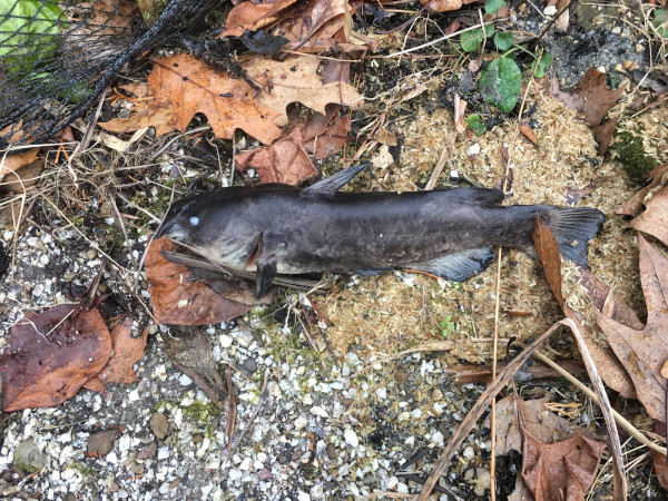 Also found a dead catfish near the center under the net and pulled it to shore with the dip net.