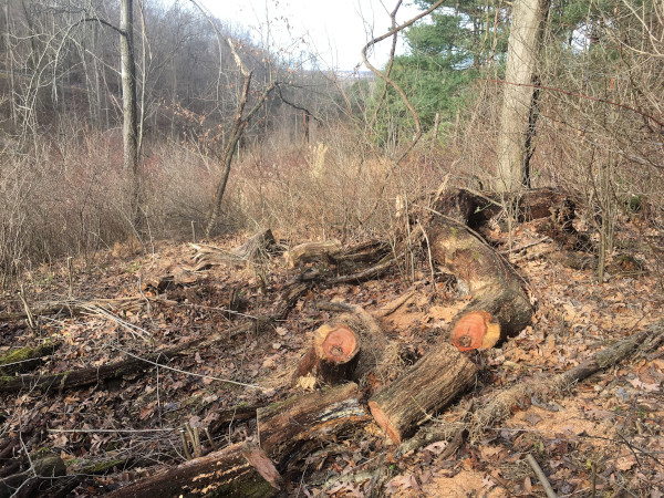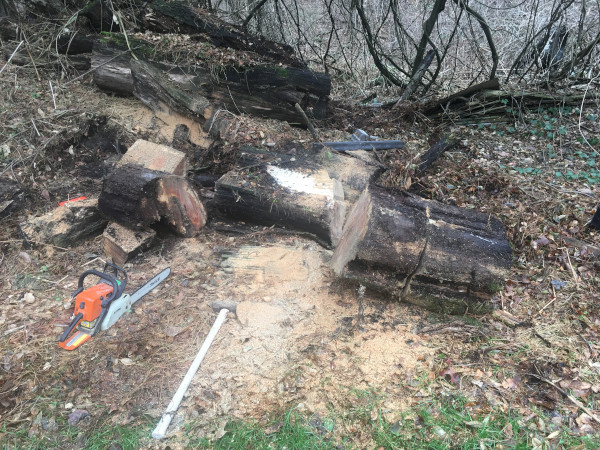 Cutting up the downed cherry which in addition to some big logs for cold nights will make the spring vault more accessible so I can start giving that more attention in addition to getting new trees planted.