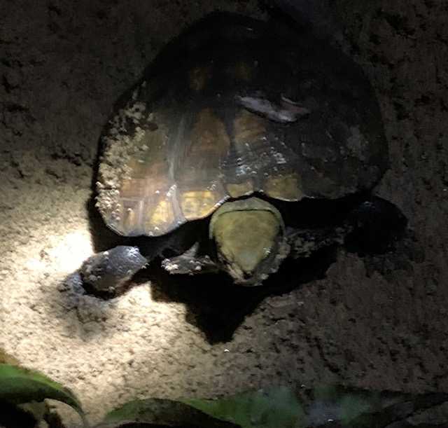 This is a welcome breakthroughs after several years of failed nesting attempts with eggs being dropped on the ground or in the water and eaten or trampled by the occupants. Apparently the 4 by 8 foot lidded pens are to cramped for the liking of the females when it comes to selection of nesting sites and I experimented with a variety of other options including a totally terrestrial breeding pen that is part of the newer DD duplex built in 2016. But what worked in the end was the open paddock enclosure with a pond and spacious land area with a sand bed that was always appealing to the native wood and eastern box turtles.
