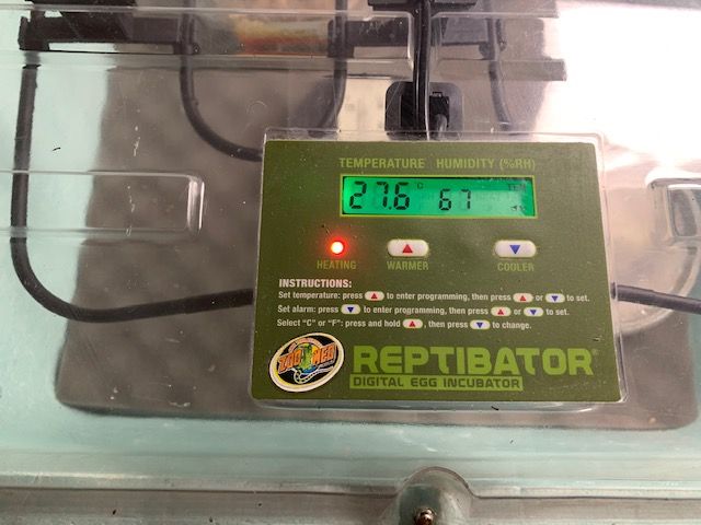 It was was my original plan to run this group like I did the native species after raccoons started to become a serious problem. The lidded pen was built on the upper boundary of original open pen in 2006 to keep the original occupants safe from predation at night and a daily ritual developed ; putting the turtles out in the morning and gathering them up to put away for the night. In 2014 I converted the lidded pen to a semi aquatic setup with the addition of a 50 gallon Rubbermaid tub for a pool and a smaller tub for a pool that also serves as an up flow bio filter that discharges to the lower pool via a 3/4 bulkhead fitting. This became the model for other projects in the coming years and I did some upgrades on the open pen last fall that allow the breeding group finally to spend time in it on a regular basis with minimal supervision. And that was what was needed to finally get a successful nesting and 5 eggs that are now in the Zoo Med incubator. I set it at 30.5 degrees Celsius to put it slightly over the threshold for producing female offspring. Would like to raise a couple girls to put with the young male in the lower section of the DD system and one to go with the pair raised up from hatchlings in the upper section.