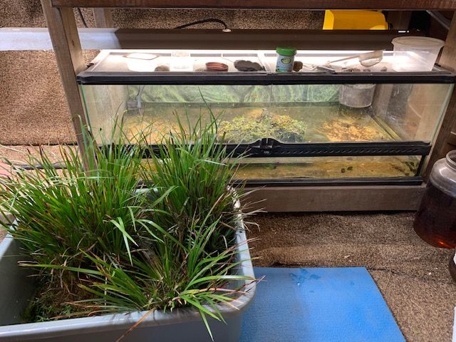Currently that is my main focus. This week I accomplished two more milestones in the way of a newt tank upgrade and another background build for a rock face with plants that will go around the spillway waterfall of the tub that is part of the Turtle Table setup.