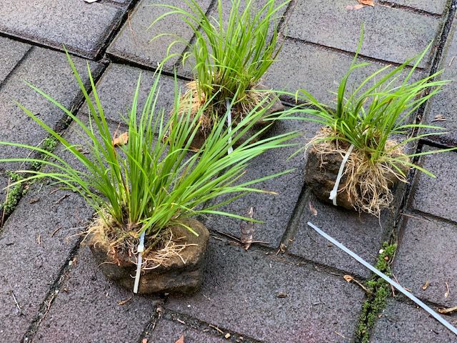 The three clumps of Licorice Sweetflag—an Acorus gramineus variety were overgrowing the Exo Terra setup for the Yunnan Newts so I replaced them with three divisions of a clump of Pygmy sweetflag—var pusillus that I attached to rocks with zip ties in similar fashion to the original planting several years ago.
