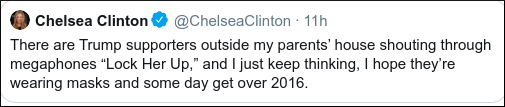 ROFL. We get over 2016, b*tch? Really? Yeah that is the problem. You have no idea what you’ve unleashed or what’s coming for you if your skanky would-be-elite asses manage to impose their will on us. Or think you do. After the outrages of 2020 and the revelations of how deep the fraud is? You have no idea, Chelsea, baby. And I’m still sane enough to hope very much you never find out. I hope very much the courts rule justly and that you and your ilk throw a massive tantrum and fly off to some tropical resort to cosplay rightful-leaders-in-exhile.