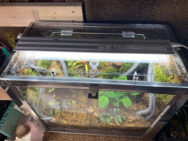 This completes the small metal frame project that began a year ago. All that is needed are critters. I’m thinking Hourglass Tree Frogs—a small species from Central America that I’ve always wanted to try.