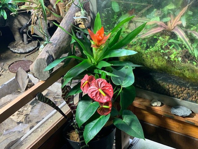 Added two new plants; a Guzmania bromeliad that was on clearance at Lowe’s and a Selaginella martensii. Also got some holiday cactuses—white, pink and red for house plants.