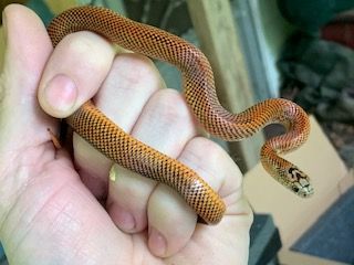 Lively little thing too. Posturing defensively, vibrating its tail in rattlesnake fashion typical of most colubrid snakes—especially the young ones! I was going to leave him in the container until I get a proper enclosure set up but he crawled under the paper towel so I took him out to get some better first time photos.