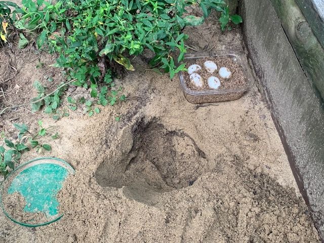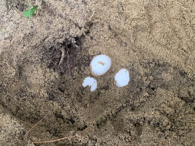 Found a clutch of 5—probably from Olivia who was scratching around in a less than ideal place a couple weeks ago. She finally deposited them in the sand bed that I refreshed a day later and then got busy with other things and a long stretch of days working.