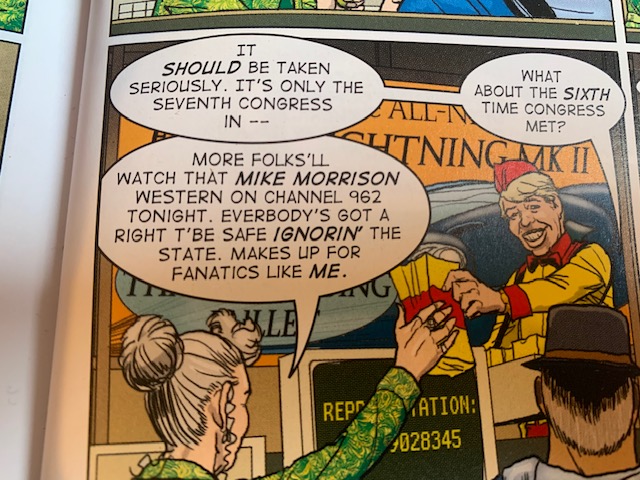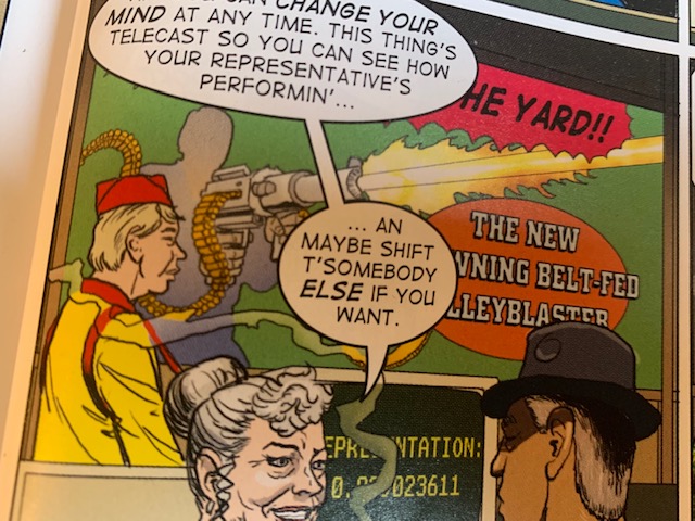 In regard to Mike Blessing’s article about helping yourself to an abandoned Russian tank. He mentioned belt fed machine guns among the types of arms that the Ukrainian President is handing out to the citizen militias. I couldn’t help but think of the ad for the “Browning Belt Fed Gully Blaster” that appeared on the big telecom screen at the Continental Congress in the “Probability Broach” graphic novel.